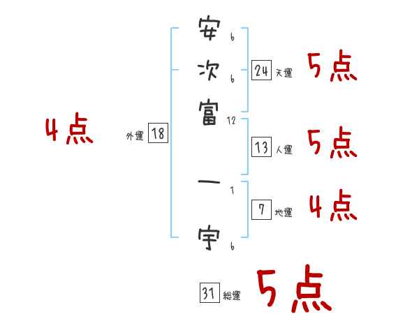 安次富一宇さんの画数の鑑定結果