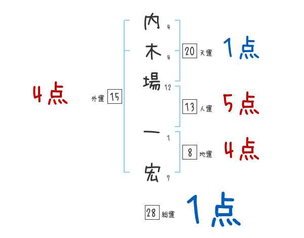 総運![]() | 内木場一宏さんの総運は28画の1つ星!家庭環境に注意。スポーツで活躍できる能力があるかも。 あなたの人生を表す1番重要な運勢です。生涯を通じて影響する総合運となり、主に50歳以降の晩年期に影響を及ぼします。 |
