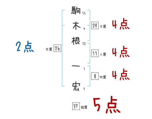 駒木根一宏さんの画数の鑑定結果