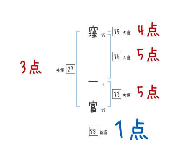 総運![]() | 窪一富さんの総運は28画の1つ星!家庭環境に注意。スポーツで活躍できる能力があるかも。 あなたの人生を表す1番重要な運勢です。生涯を通じて影響する総合運となり、主に50歳以降の晩年期に影響を及ぼします。 |