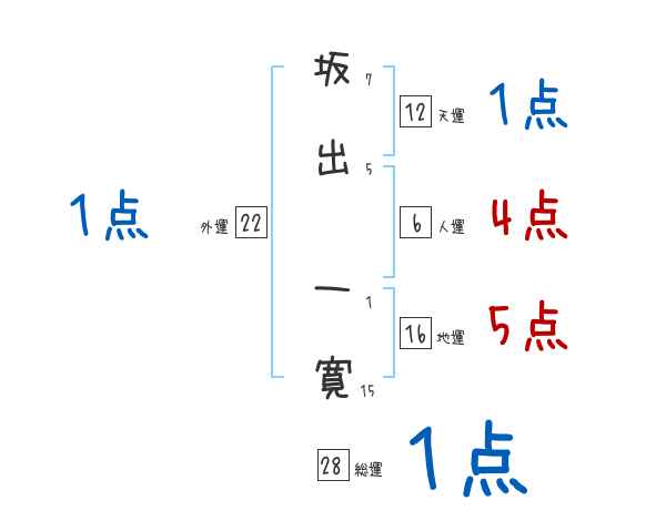 坂出一寛さんの画数の鑑定結果