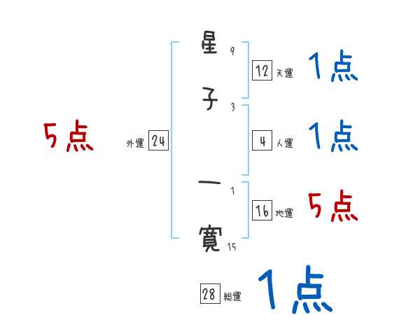 星子一寛さんの画数の鑑定結果