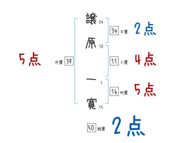 外運![]() | 譲原一寛さんの外運は39画の5つ星!社交性に優れ人望が厚い。人の上に立ち成功する。 生活面を象徴する運勢です。外部から受ける影響力を表し、結婚運、家庭運や職場、環境への順応性を表します。 |