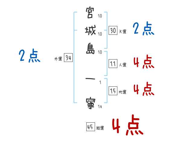 宮城島一寧さんの画数の鑑定結果