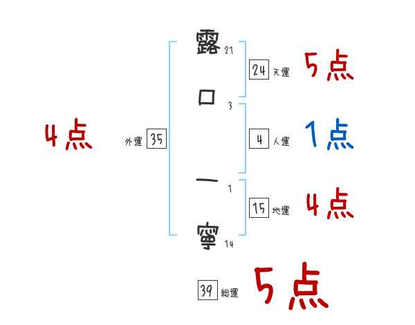 露口一寧さんの画数の鑑定結果