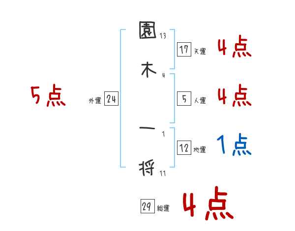 園木一将さんの画数の鑑定結果