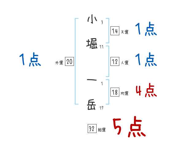 総運![]() | 小堀一岳さんの総運は32画の5つ星!柔軟性があり成功する。チャンスが多く金運が良い。 あなたの人生を表す1番重要な運勢です。生涯を通じて影響する総合運となり、主に50歳以降の晩年期に影響を及ぼします。 |