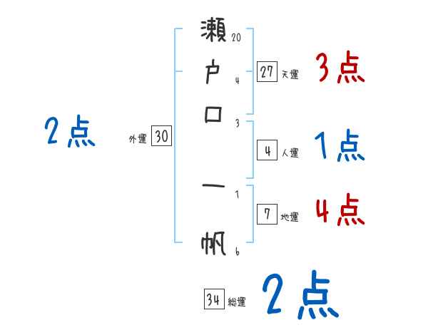 天運![]() | 瀬戸口一帆さんの天運は27画の3つ星!頭脳明晰だが強情で摩擦が多い傾向。孤立に注意。 家系が持つ宿命的な運勢を表します。祖先から受け継いだ苗字ですので自分の力が及びません。家柄を象徴します。 |