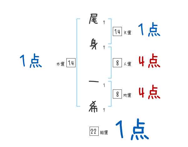 尾身一希さんの画数の鑑定結果