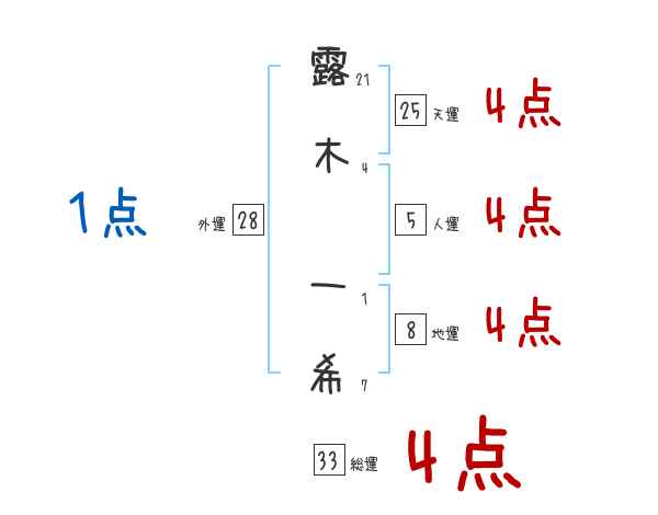 外運![]() | 露木一希さんの外運は28画の1つ星!家庭環境に注意。スポーツで活躍できる能力があるかも。 生活面を象徴する運勢です。外部から受ける影響力を表し、結婚運、家庭運や職場、環境への順応性を表します。 |