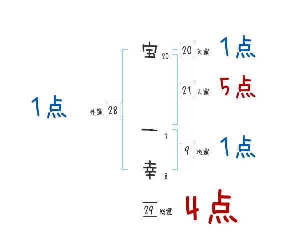宝一幸さんの画数の鑑定結果