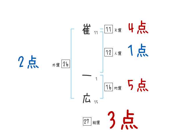 崔一広さんの画数の鑑定結果