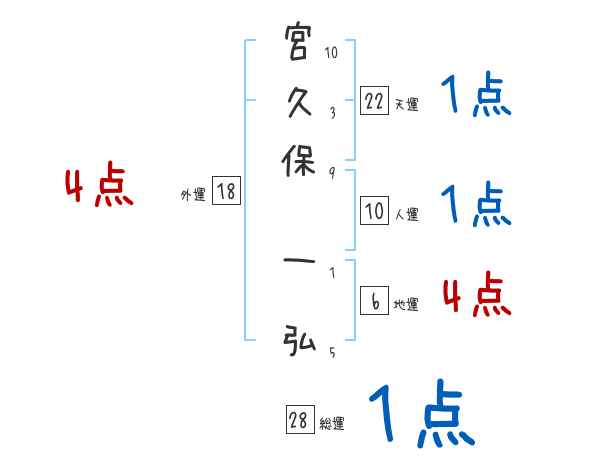 宮久保一弘さんの画数の鑑定結果