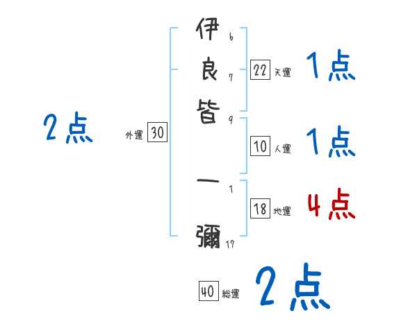 外運![]() | 伊良皆一彌さんの外運は30画の2つ星!浮き沈みの激しさに注意しましょう。 生活面を象徴する運勢です。外部から受ける影響力を表し、結婚運、家庭運や職場、環境への順応性を表します。 |