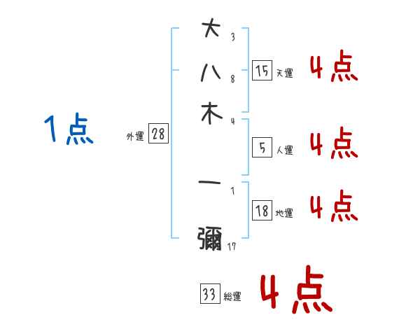 総運![]() | 大八木一彌さんの総運は33画の4つ星!権力志向でプライドが高い。勇気があり運を切り開き成功する。 あなたの人生を表す1番重要な運勢です。生涯を通じて影響する総合運となり、主に50歳以降の晩年期に影響を及ぼします。 |