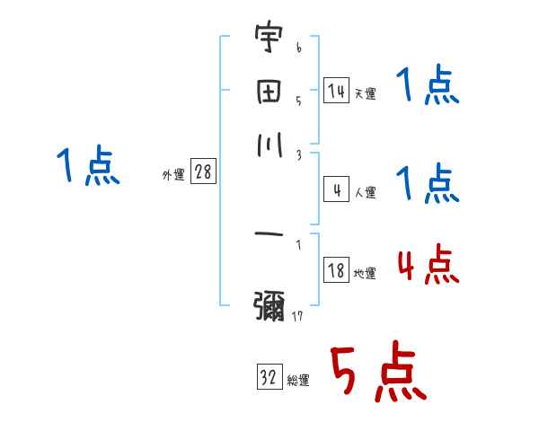 総運![]() | 宇田川一彌さんの総運は32画の5つ星!柔軟性があり成功する。チャンスが多く金運が良い。 あなたの人生を表す1番重要な運勢です。生涯を通じて影響する総合運となり、主に50歳以降の晩年期に影響を及ぼします。 |