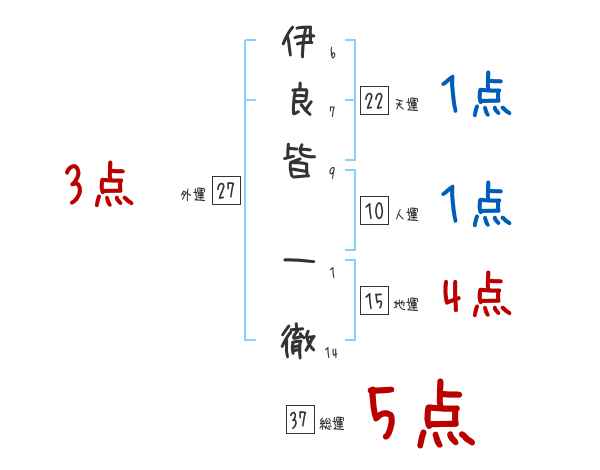 伊良皆一徹さんの画数の鑑定結果