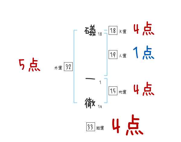 礒一徹さんの画数の鑑定結果