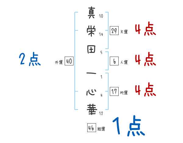 天運![]() | 真栄田一心華さんの天運は29画の4つ星!完全主義で才能がある。厳格な心の持ち主。 家系が持つ宿命的な運勢を表します。祖先から受け継いだ苗字ですので自分の力が及びません。家柄を象徴します。 |