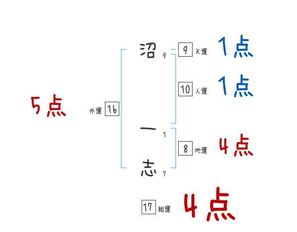 沼一志さんの画数の鑑定結果