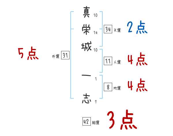 地運![]() | 真栄城一志さんの地運は8画の4つ星!勤勉家。根気強く努力し成功する。忍耐力がある。 個性を表す基礎的な運勢です。性格形成や対人関係、行動力など家庭環境に影響されます。主に誕生してから20歳くらいまでの若年期の運勢を表します。 |