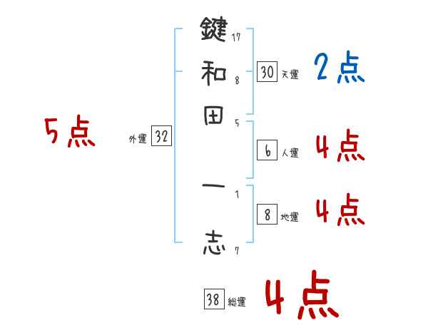鍵和田一志さんの画数の鑑定結果