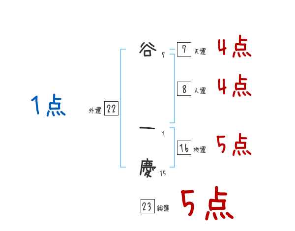 谷一慶さんの画数の鑑定結果