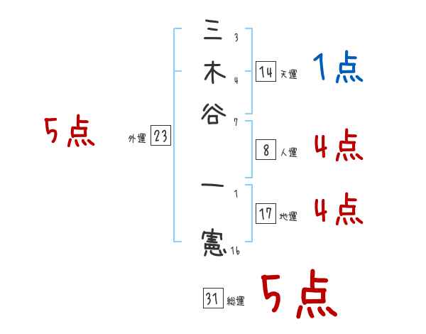 天運![]() | 三木谷一憲さんの天運は14画の1つ星!人に対して優しいがストレスを溜め込みがち。人間関係のトラブルを避けるよう気をつけましょう。 家系が持つ宿命的な運勢を表します。祖先から受け継いだ苗字ですので自分の力が及びません。家柄を象徴します。 |