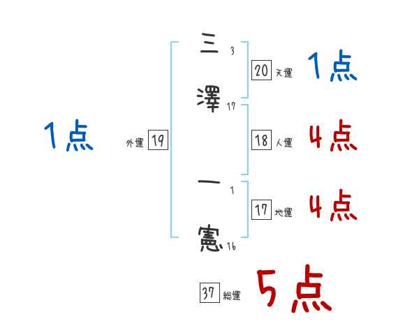外運![]() | 三澤一憲さんの外運は19画の1つ星!優れた才能を持ちますが、協調性が足りないことも。周りの人と協力する事を意識しましょう。 生活面を象徴する運勢です。外部から受ける影響力を表し、結婚運、家庭運や職場、環境への順応性を表します。 |