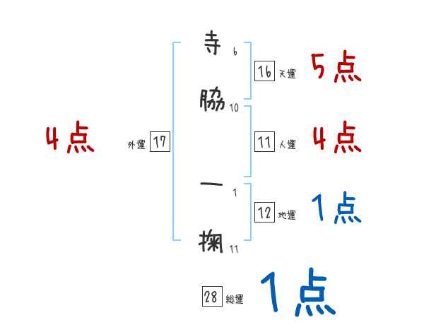 寺脇一掬さんの外運は17画の4つ星