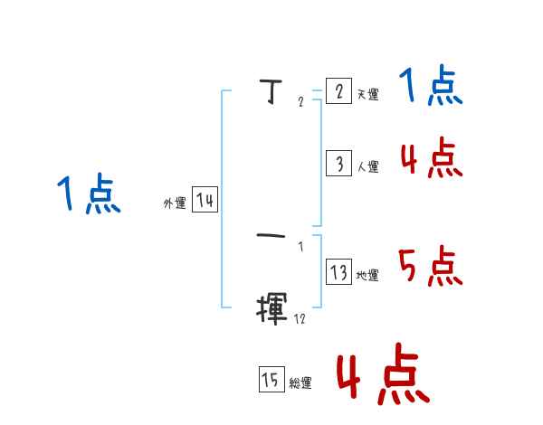 外運![]() | 丁一揮さんの外運は14画の1つ星!人に対して優しいがストレスを溜め込みがち。人間関係のトラブルを避けるよう気をつけましょう。 生活面を象徴する運勢です。外部から受ける影響力を表し、結婚運、家庭運や職場、環境への順応性を表します。 |