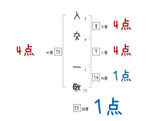 外運![]() | 入交一敬さんの外運は15画の4つ星!人徳があり出世する。順調に物事を進め円満な人生。 生活面を象徴する運勢です。外部から受ける影響力を表し、結婚運、家庭運や職場、環境への順応性を表します。 |