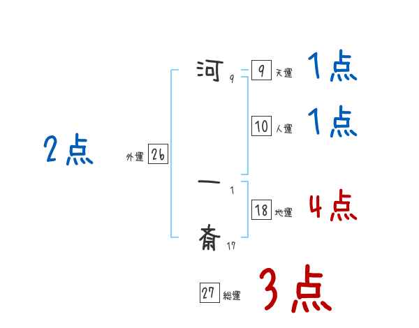 天運![]() | 河一斎さんの天運は9画の1つ星!消極的で才能を発揮することが苦手なことも。周りの意見に耳を傾けましょう。 家系が持つ宿命的な運勢を表します。祖先から受け継いだ苗字ですので自分の力が及びません。家柄を象徴します。 |
