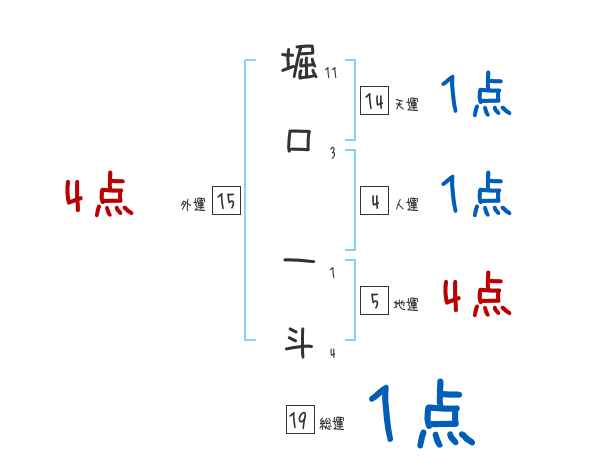 外運![]() | 堀口一斗さんの外運は15画の4つ星!人徳があり出世する。順調に物事を進め円満な人生。 生活面を象徴する運勢です。外部から受ける影響力を表し、結婚運、家庭運や職場、環境への順応性を表します。 |