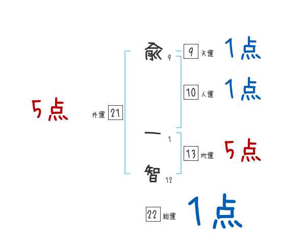 外運![]() | 兪一智さんの外運は21画の5つ星!統率力がある。独立し成功する。名誉を手に入れる。 生活面を象徴する運勢です。外部から受ける影響力を表し、結婚運、家庭運や職場、環境への順応性を表します。 |