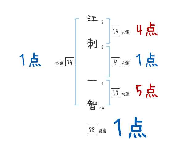 江刺一智さんの画数の鑑定結果