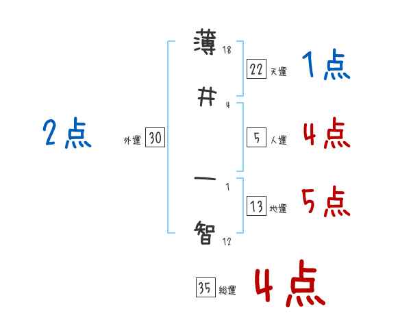 薄井一智さんの画数の鑑定結果