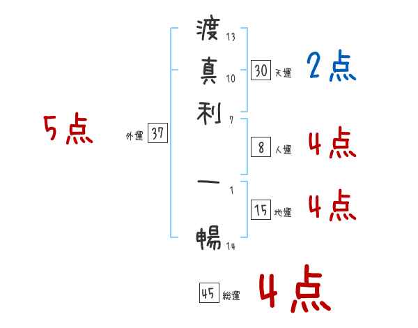 渡真利一暢さんの画数の鑑定結果