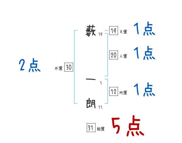 外運![]() | 薮一朗さんの外運は30画の2つ星!浮き沈みの激しさに注意しましょう。 生活面を象徴する運勢です。外部から受ける影響力を表し、結婚運、家庭運や職場、環境への順応性を表します。 |
