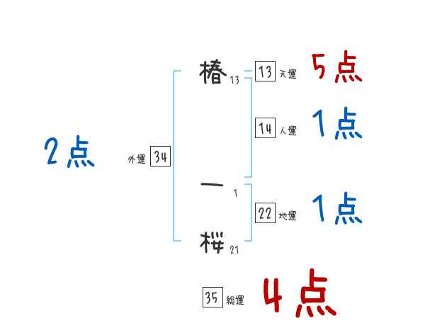 椿一桜さんの画数の鑑定結果