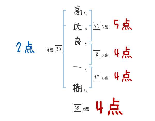 天運![]() | 高比良一樹さんの天運は21画の5つ星!統率力がある。独立し成功する。名誉を手に入れる。 家系が持つ宿命的な運勢を表します。祖先から受け継いだ苗字ですので自分の力が及びません。家柄を象徴します。 |