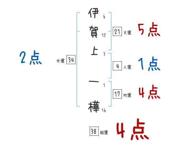 人運![]() | 伊賀上一樺さんの人運は4画の1つ星!感情が不安定で苦労するかも。周囲との協調を心掛けましょう。 性格や才能などを表す2番目に重要な運勢です。人間関係や協調性、社会的な成功に影響します。主に20歳から50歳ぐらいまでの中年期の運勢を表します。 |