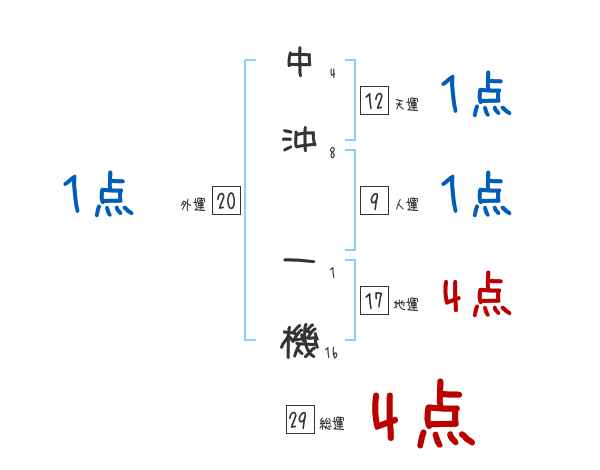 中沖一機さんの画数の鑑定結果