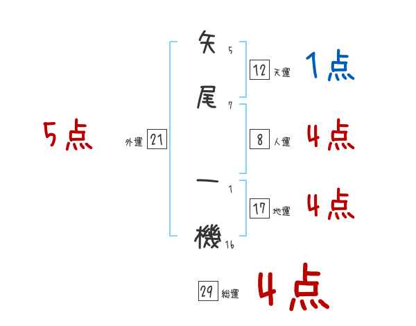 矢尾一機さんの画数の鑑定結果