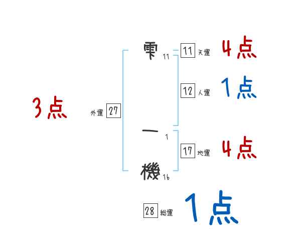 雫一機さんの画数の鑑定結果