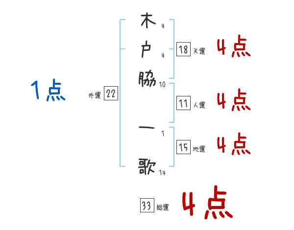 天運![]() | 木戸脇一歌さんの天運は18画の4つ星!情熱的で剛気。忍耐力があり信頼される。 家系が持つ宿命的な運勢を表します。祖先から受け継いだ苗字ですので自分の力が及びません。家柄を象徴します。 |