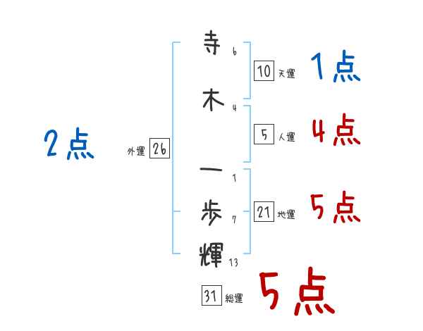 寺木一歩輝さんの画数の鑑定結果