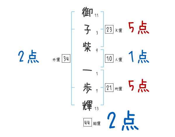 御子柴一歩輝さんの画数の鑑定結果