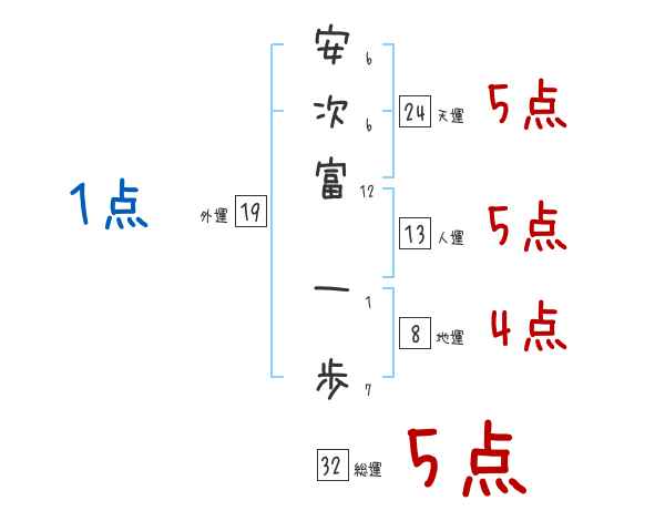 安次富一歩さんの画数の鑑定結果