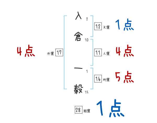 入倉一毅さんの画数の鑑定結果